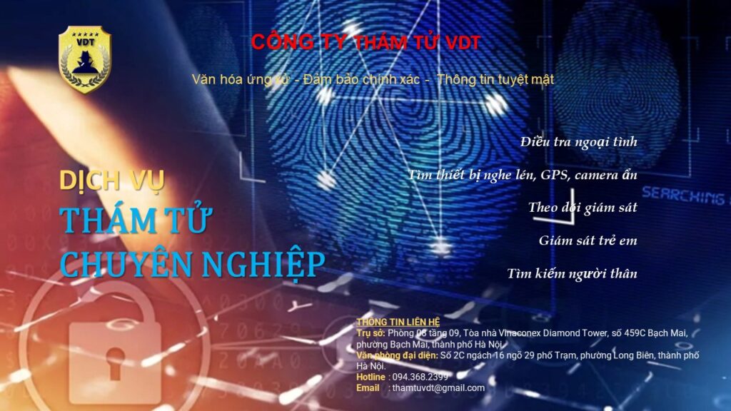 Công ty thám tử VDT là một trong những đơn vị hàng đầu trong lĩnh vực cung cấp dịch vụ thám tử điều tra kinh tế tại Việt Nam. Với đội ngũ thám tử giàu kinh nghiệm, được đào tạo bài bản và trang bị các thiết bị công nghệ hiện đại, VDT cam kết mang đến cho khách hàng những thông tin chính xác, kịp thời và bảo mật tuyệt đối.